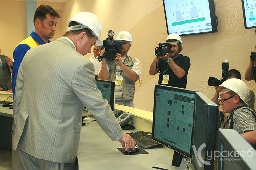Проект строительства ПГУ-115 МВт на котельной Северо-Западного района г. Курска является частью масштабной инвестиционной программы ОАО «Квадра», реализуемой в рамках договоров присоединения мощности. Кстати, в рамках инвестиционной программы ОАО «Квадра» до 2015 года планирует построить объекты генерации общей установленной мощностью 1092 МВт. Проект строительства ПГУ-115 МВт на КСЗР города Курска предусматривает возведение нового комплекса, который состоит из двух газотурбинных установок производства фирмы «General Electric» (США) LM6000 PD SPRINT мощностью 45 МВт каждая, паровой турбоустановки производства «Калужского турбинного завода» (КТЗ) Т-25/34-3,4/0,12 мощностью 25 МВт, двух паровых котлов-утилизаторов производства ОАО ЗиО г. Подольск Пр-75-39-440 Д и двух комплектов дожимных компрессорных станций. Посетила делегация и главный пульт управления ПГУ. Стоит отметить, что управление установкой практически полностью автоматизировано. В этом смогли убедиться Александр Михайлов и президент группы «Онэксим» Михаил Прохоров. Им представилась возможность провести первый запуск парогазовой установки.