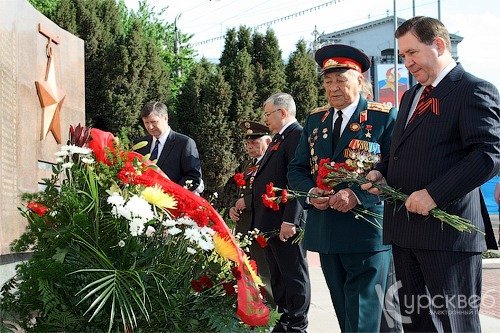 В этот знаменательный день к ветеранам, защитникам Отечества, воинам Курского гарнизона, курянам обратился Губернатор Курской области Александр Михайлов. В своей торжественной речи он выразил бесконечную благодарность участникам тех памятных сражений, положившим конец варварской и кровопролитной войне, а также заверил ветеранов, что Администрация Курской области будет и дальше помогать им и всячески поддерживать. «600 тысяч курян были отмечены высокими правительственными наградами, 263 наших земляка были удостоены звания Героя Советского Союза, двое из них – дважды, 68 стали полными кавалерами Ордена Славы, - отметил Губернатор. – За вклад курян в Победу Курская область в 1957 году была награждена Орденом Ленина, город Курск удостоен Ордена Отечественной войны I степени. Лётчик Иван Степанович Любимов, сбивший 20 вражеских самолётов, Николай Пигорев и Владимир Пивоваров, повторившие подвиг Александра Матросова, их именами должен гордиться каждый курянин. Вошёл в бессмертие десант Константина Ольшанского, курянка Екатерина Зеленко стала единственной в мире женщиной, совершившей в воздушном бою таран вражеского самолёта». С нашим краем связано одно из самых значительных событий военной истории, величайшее сражение на Курской дуге, положившее начало массовому изгнанию захватчиков с наших территорий, вспомнил Александр Николаевич. Об этом забывать никак нельзя, умалять заслуги наших солдат и преуменьшать вклад России в Победу цинично. Глава области пожелал ветеранам счастья, благополучия в семьях, бодрости духа, долгих лет жизни, мирного неба. Также к курянам обратился председатель Курского областного Совета ветеранов войны, труда, Вооруженных сил и правоохранительных органов Михаил Булатов. Он поздравил их с 65-летием Победы и пожелал, чтобы всё, что было завоёвано таким великим трудом, такой большой ценой, бесчисленными потерями, было сохранено новым поколением.