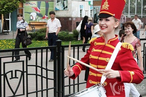 Десятиклассница Ирина Сидорина – участница Курского духового оркестра, в колонне марш-парада шагает уже 4 раз. «Особенно гордо идти в начале колонны, - делится впечатлениями Ирина, - мы пройдём до Красной площади и покажем «разводку».