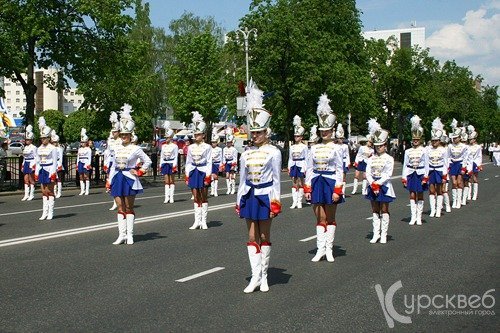 В марш-параде под названием «Победным набатом звучит сорок пятый» участвовало 22 духовых оркестра – всего около 200 человек - коллективов домов культуры Курска, Щигров, Льгова, Железногорска, Глушково и других городов и районных центров нашей области. Колонна оркестрантов прошествовала от площади Перекальского по улице Ленина до Красной площади. Особой красотой отличались оркестры с женским лицом, юные барабанщицы отстукивали ритмы песен военных лет, наряженные в гусарские кителя. Ослепляя своими очаровательными улыбками, девушки прошагали вниз по улице Ленина.