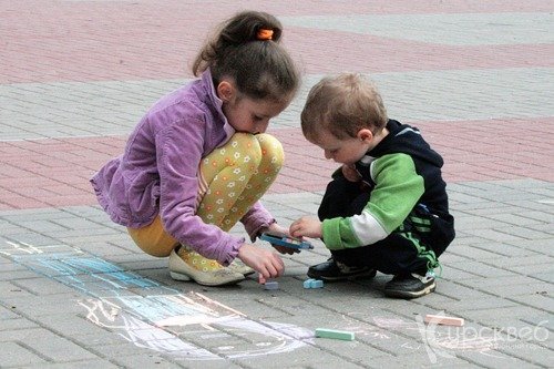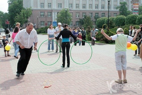 В 11 часов утра на Театральной площади уже развернулся весёлый марафон: дети развлекались, участвуя во всевозможных конкурсах, рисовали на асфальте.