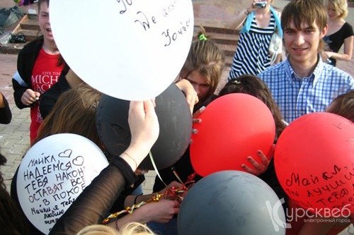 Не стал исключением и наш город. Курские поклонники таланта Майкла Джексона устроили настоящее шоу на Театральной площади, станцевав несколько танцев короля поп-музыки. Молодые люди и девушки с белыми повязками на правой руке, в память о Майкле, вышли на площадь, чтобы устроить для прохожих танц-моб.