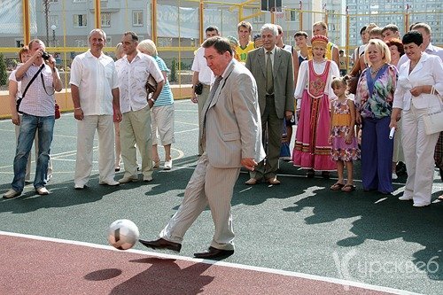 Александр Михайлов поздравил жителей микрорайона с этим замечательным событием. «Я с большим удовольствием принял предложение городской Администрации поучаствовать сегодня в этом мероприятии, хочу поблагодарить глав Администрации, строителей с их наступающим профессиональным праздником, - сказал глава региона. – Областная Администрация всегда поддерживала и будет поддерживать подобные инициативы. Сейчас наш город переживает новую веху градостроительства: сначала микрорайон застраивается новыми домами, затем школами, детскими садами, супермаркетами и авто-парковками. Всё это делается на современном высокотехнологичном уровне. Подобные этому рекреационные спортивные комплексы, помогающие не только отдыхать, но и поддерживать хорошую физическую форму, являются одними из составляющих этого проекта». Александр Михайлов отметил, что строительство подобных сооружений и выполнение программы является качественным сдвигом со времён застоя. Губернатор пообещал, что усовершенствованию новых жилых районов будет и дальше уделяться постоянное внимание. «Очень хочется надеяться, что площадка прослужит очень долго, что к ней будет относиться бережно, ведь она построена на деньги наших горожан. Хочется, чтобы для нас это стало понятным и вошло в нашу жизнь как должное, так как в нашем городе на протяжении лет 15 существовал некий вакуум, когда вообще ничего не строилось. Мы потихонечку из этого выбираемся, так что будем надеяться, что будет поменьше революций и реформ». Александр Михайлов поздравил и наградил лучших строителей и работников «Завода КПД».
