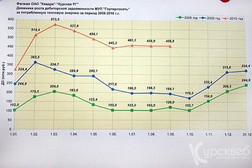 Хронические долги данных предприятий за потребленную тепловую энергию негативно сказываются на финансово-экономическом состоянии Курского филиала компании «Квадра», что серьёзно осложняет подготовку энергообъектов компании к предстоящему осеннее-зимнему периоду и может негативно сказаться на стабильности теплоснабжения в предстоящий отопительный период. В результате неплатежей Курский филиал ОАО «Квадра» не сможет расплачиваться за поставки газа перед ОАО «Курскрегионгаз», что может повлечь за собой перебои с поставками топлива для электростанций. Под угрозу срыва поставлен график текущего и капитального ремонта оборудования генерирующих станций и тепловых сетей, а также выполнение годовой инвестиционной программы, в частности, осложняется ситуация с реализацией проекта по строительству нового энергоблока на котельной Северо-Западного района.