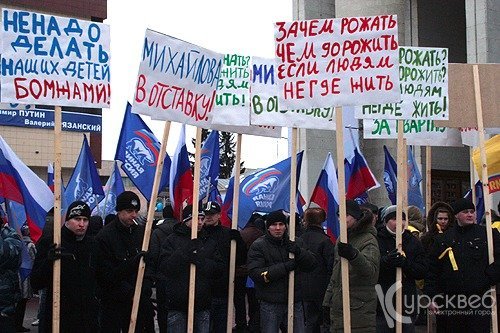 В итоге на одной стороне площади эсеры проводили митинг против незаконно повышенных тарифов ЖКХ, а на другой была Масленица с зажигательной дискотекой, конкурсами, лотереей и полевой кухней. Надо отметить, что на заявленном митинге "Справедливой России" сторонников "Единой России", а точнее курян, вышедших под флагами партии власти было значительно больше, что и неудивительно, так как, по неофициальной информации, был задействован административный ресурс - на площадь были приведены несколько сотен студентов ряда курских вузов.