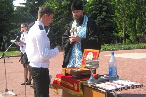 После чего состоялось вручение отличившимся воспитанникам значков и удостоверений Витязя. По окончании торжественной церемонии представители "Ассоциации Витязей" возложили венки к вечному огню.