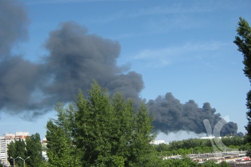 Жители Центральной части города сейчас могут наблюдать над своими головами огромный столб черного дыма.