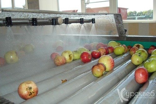Это оборудование было установлено для того, чтобы пюре из экологически чистых яблок не консервировать химическим способом, а выпускать в «живом» виде, без красителей, добавок и консервантов. Линия работает по сезонному принципу. Сырье для переработки поступает из собственных садов завода, что журналисты наблюдали собственными глазами.