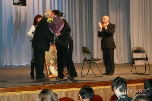 Он отметил, что за последние 10 лет качество подготовки молодых музыкантов улучшилось, что доказывается их участием и высокими результатами в музыкальных фестивалях и конкурсах. В этом большая заслуга и школ искусств и педагогов, готовящих юных дарований, и различных государственных и муниципальных структур. Валерий Вячеславович сердечно поблагодарил Александра Склярова за преданность нашей области, за многолетнюю работу в конкурсах, посвящённых одному из самых ярких мастеров баянного исполнительства Виктору Гридину, и выразил уверенность в том, что Александр Владимирович и в будущем будет приезжать в Курск для участия в творческих фестивалях и мастер-классах. От комитета по культуре Курской области Валерий Рудской вручил юбиляру картину, написанную для него одним из молодых курских художников.