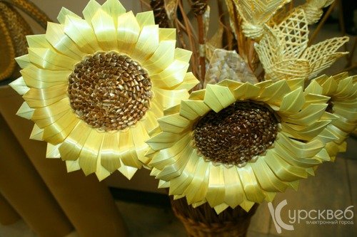 Следом за ней состоялось открытие второй выставки мастеров и учащихся Железногорской школы народных промыслов «Артель» «Возвращение к истокам». В её экспозицию вошли поделки из лозы, соломы, дерева, детские рисунки. Выставочный зал КТЦ «Звёздный» украсили всевозможные кресла из лозы и дерева, соломенные букеты, подсолнухи, шляпки, декоративные дощечки, игрушки и многое другое, сделанное руками детей из школы народных промыслов «Артель».