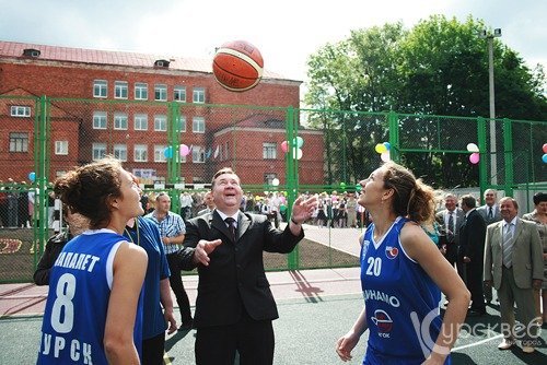 Торжественно перерезав красную ленточку, губернатор Александр Михайлов был удостоен почётной миссии совершить первое вбрасывание мяча для женской баскетбольной команды школы, которая тут же опробовала новую площадку. Теперь девушки смогут тренироваться на новом качественном покрытии, что позволит им в будущем добиваться новых блистательных побед, защищая спортивную честь нашей области, а возможно, и всей России.