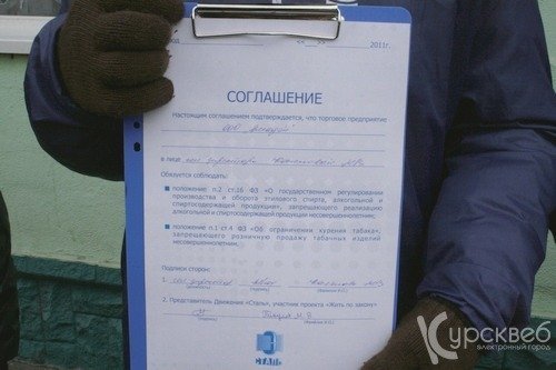 Кроме того, представитель молодежного движения с руководством магазина подписали Соглашение (своего рода "обещание" магазина), что алкоголь и табачные изделия здесь больше продавать детям не будут.