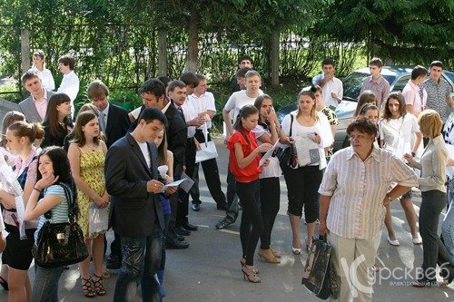 Экзамен начался в 10.00, но уже за полтора часа до официального начала к дверям школы стали подходить выпускники вместе с сопровождающими их учителями.
