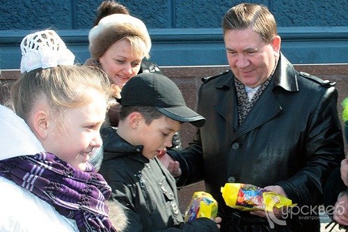 Сегодня около Дома Советов Александр Михайлов торжественно вручил автомобиль «Газель» на 13 посадочных мест многодетной семье Кузнецовых из города Суджи. Средства на столь необходимую для семьи покупку были выделены из фонда областного благотворительного марафона «Мир детства».