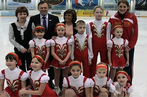 Юные фигуристы подготовили для именитой гостьи подарок - танцевальный номер под легендарную мелодию "Калинка", после чего для Ирины Родниной была организована экскурсия по ледовому спорткомплексу, в ходе которой она ознакомилась в каких условиях тренируются наши маленькие фигуристы и хоккеисты. По окончании официальной части Ирина Константиновна ответила на вопросы журналистов.