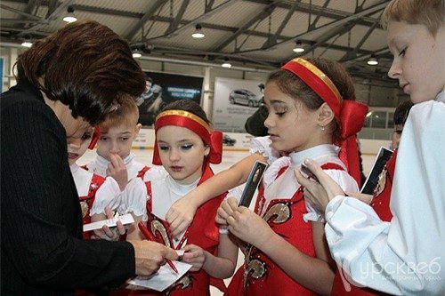 По окончании тренировки Ирина Роднина раздала всем желающим автографы и сфотографировалась с юными фигуристами.