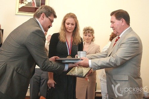 После слов благодарности, губернатор перешёл к амой приятной части встречи - награждению. Почетной грамотой Курской области награжден Сергей Попов - главный тренер команды. Благодарность администрации Курской области вручена капитану команды Маргарите Изотовой и нападающей Марии Мясниковой. Все игроки баскетбольного клуба получили премии, памятные подарки.