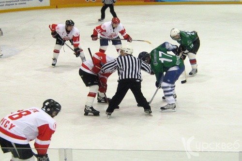 Вечером же состоялся центральный матч игрового дня, в котором играли действующий чемпион и обладатель Кубка области по хоккею ХК "Курск" и "Витязь-РГСУ".